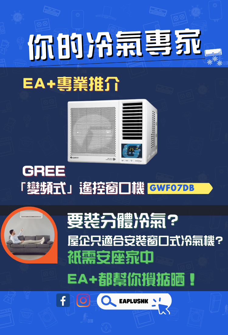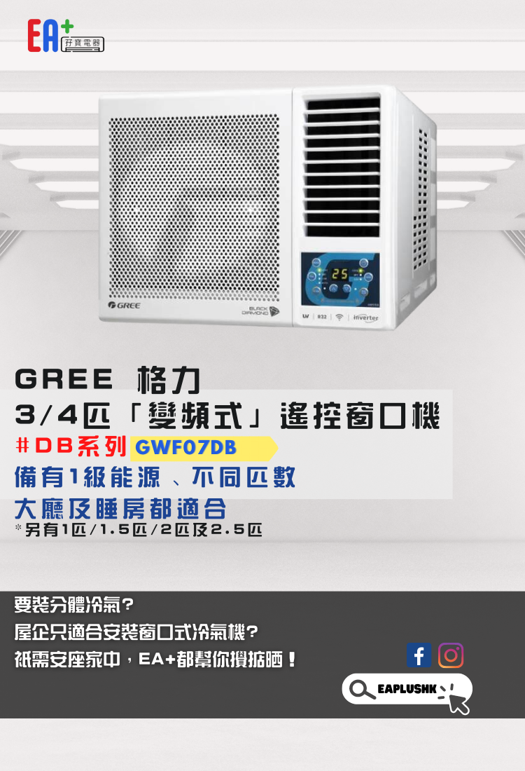GREE 格力 GWF07P 3/4匹 R32 G-Panel 雙黑鑽 變頻淨冷 窗口式冷氣機