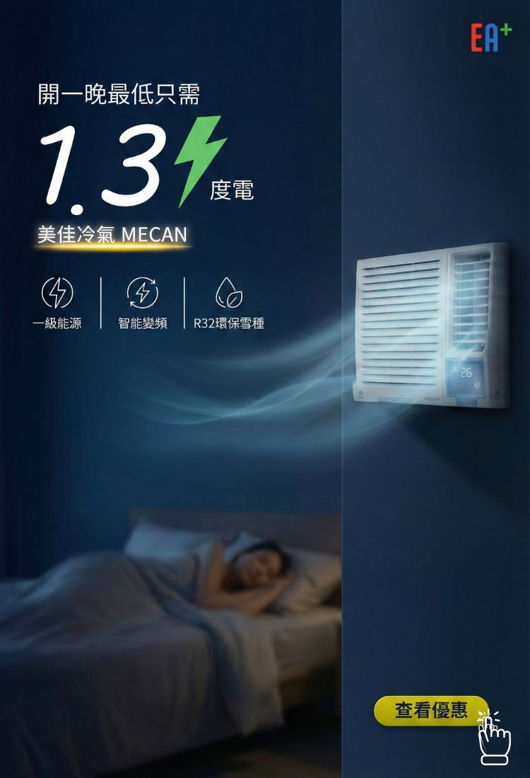 MECAN 美佳 MC12VX 1.5匹 R32 變頻淨冷型窗口式冷氣機(帶WIFI)